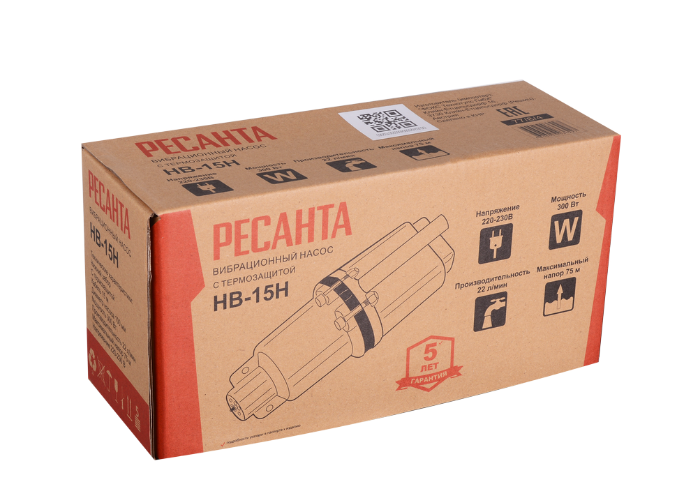 Вибрационный насос Ресанта НВ-15Н оснащен функцией защиты от перегрева. Корпус из алюминия отличается малым весом и быстро охлаждается в водной среде. Его разборные детали имеют надежное болтовое соединение. Максимальная температура жидкости, при которой устройство может использоваться без риска его перегрева и повреждения, составляет +35°C. Кабель длиной 15 м обеспечивает удобство подключения к сети.