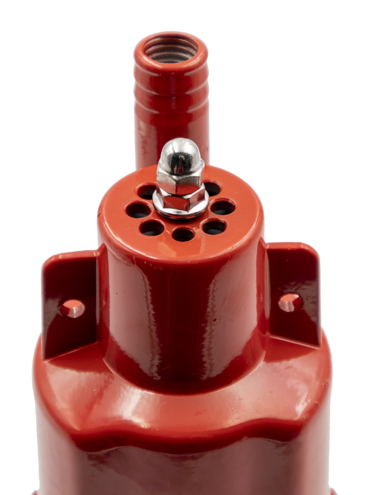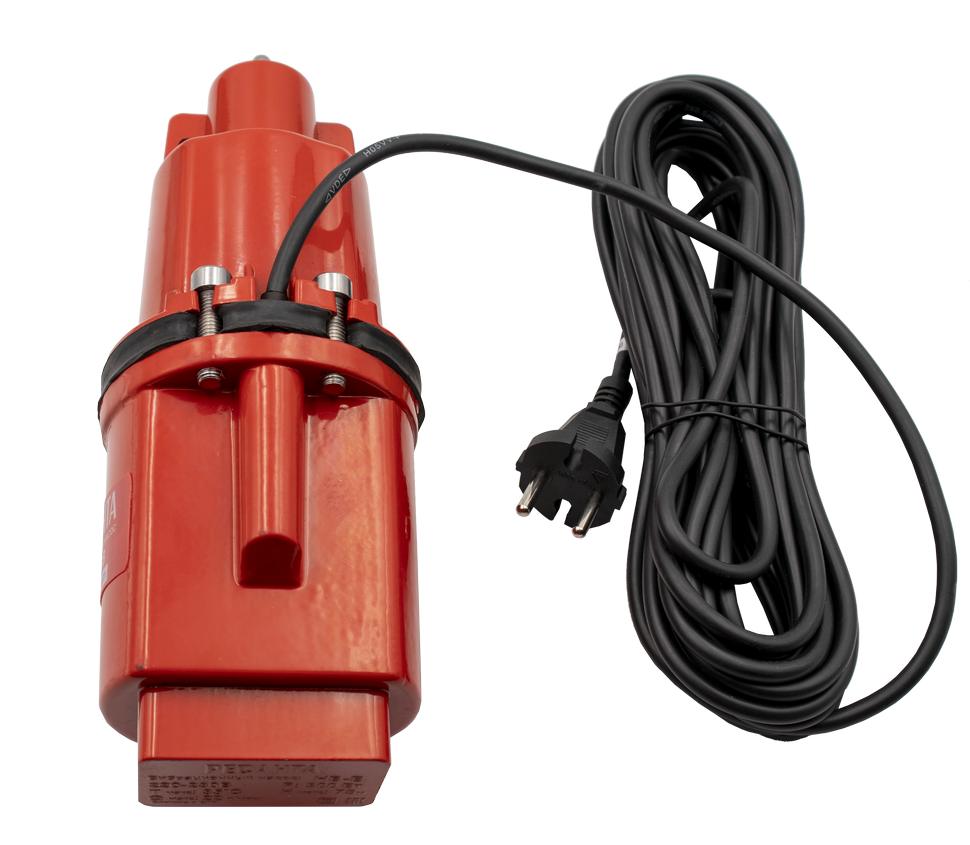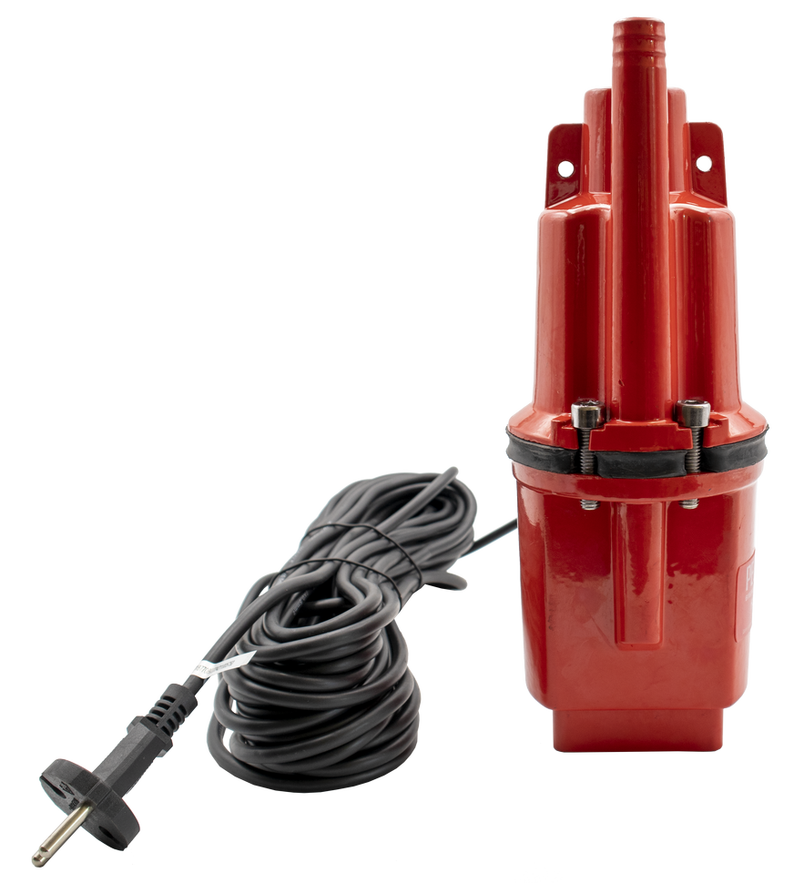 Вибрационный насос оснащен алюминиевым корпусом. Водозабор происходит в верхней части устройства. Погружать его можно на глубину до 3 м. При этом важно следить за чистотой воды, доля песка и других примесей не должна составлять более 0,01%. Длина электрокабеля составляет 15 м, дополнительно корпус оснащен тросом для удобства переноски и фиксации.