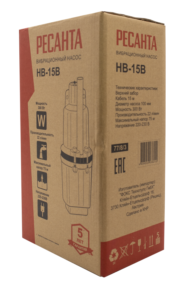Компактная, экономичная, производительная, простая в обслуживании модель Ресанта НВ-15В пригодится на любом объекте, где требуется подача воды из глубокого источника или удаленного водоема.