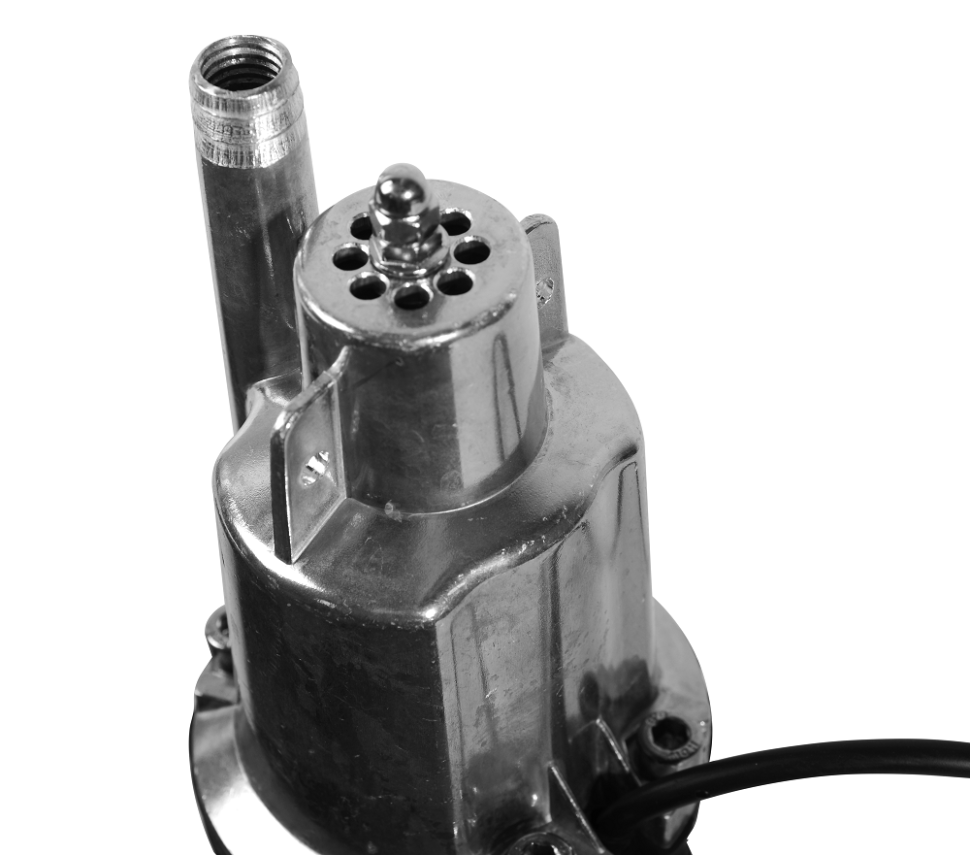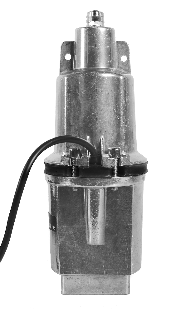 Конструкция устройства предельно проста. В ней нет электрического двигателя, который требует большого количества энергии. Это позволяет существенно снизить затраты на электричество и отказаться от технического обслуживания агрегата, который в нем не нуждается. Вибрационный насос может качать воду со скоростью 18 л/мин. Его можно погрузить в колодец, скважину, резервуар на глубину до 3 м, при этом мощности в 280 Вт будет достаточно для подъема жидкости на высоту до 72 м. Данная модель также подходит для обустройства горизонтального водопровода, она обеспечит достаточный напор даже при удаленном расположении источника (более 100 м). Устройство оснащено 10-метровым электрокабелем и тросом, который облегчает перемещение и подвешивание корпуса в скважине, водоеме. Корпус выполнен из алюминия, вес оборудования составляет 3,26 кг.