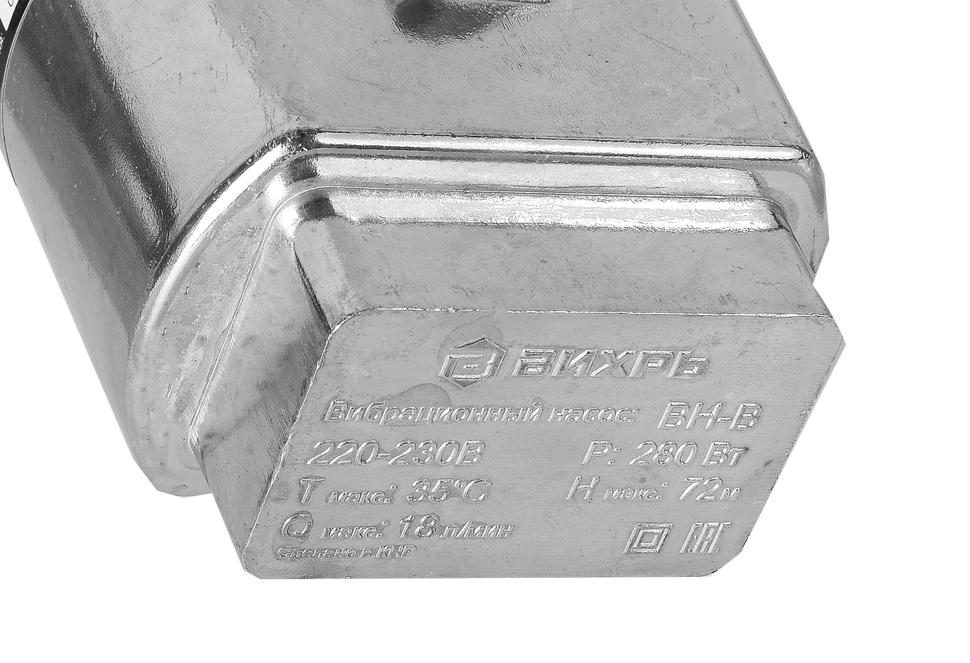 Модель вибрационного насоса бытового назначения Вихрь ВН-25В с верхним типом водозабора нашла применение в системах автономного водоснабжения частных загородных домов. Насос применяется для подачи воды из скважин, ёмкостей и колодцев при погружении агрегата на глубину до 3м. Мощность – 280 Вт. Производительность – 18 л/мин. Диаметр насоса – 10 см. Можно использовать для подачи чистой воды на участок из открытых водоёмов для технических целей. Причём расстояние по горизонтали от места водозабора до точки потребления может быть значительным и достигать 100 м.