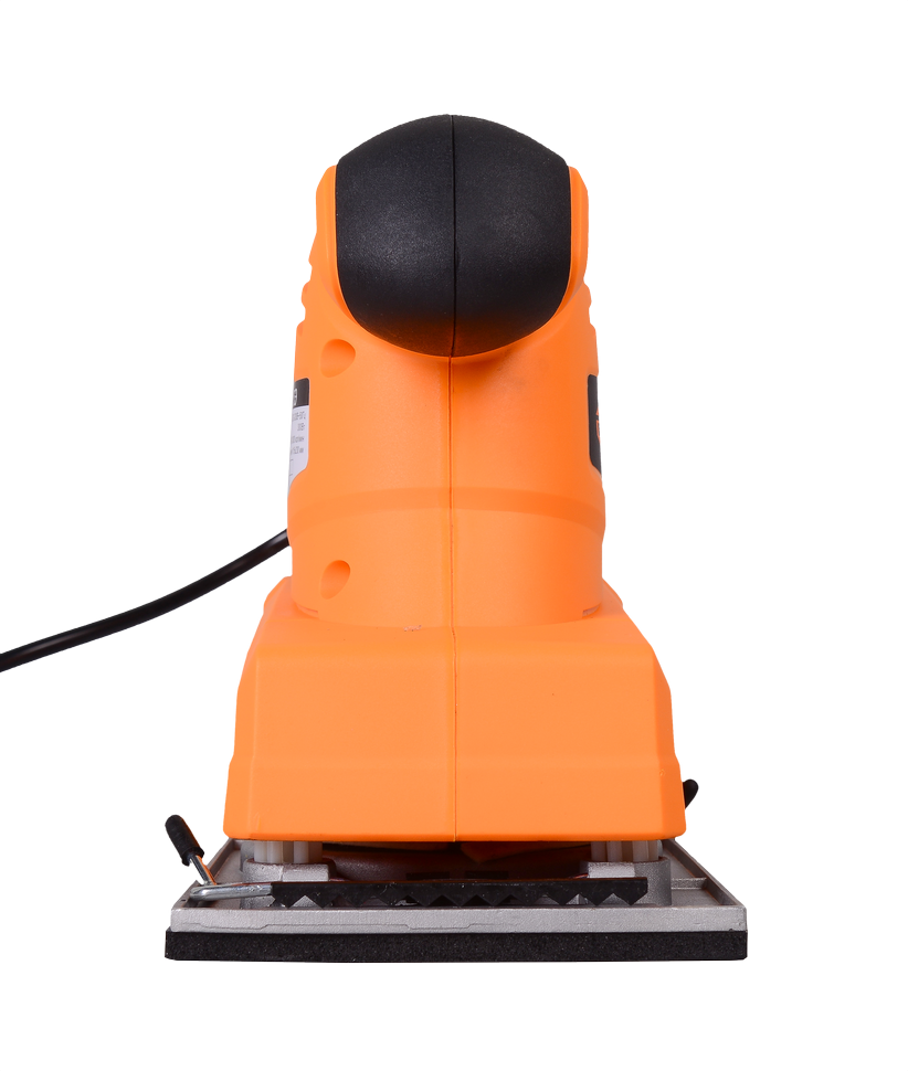 Вибрационная шлифовальная машина оснащена электрическим двигателем, который обеспечивает возвратно-поступательные движения подошвы по кольцевой орбите. Быстрая и удобная фиксация шлифовальной бумаги осуществляется за счет наличия прижимного механизма по краям основания. Шлифмашина легко справится с общей и тонкой обработкой деревянных, каменных, металлических, пластиковых поверхностей, благодаря возможности использовать шлифовальные листы с разной зернистостью и электронной регулировке частоты колебаний. Вес устройства составляет 2 кг. Для удобства удержания и эксплуатации корпус оснащен прочной ручкой с антискользящим покрытием. Клавиша включения расположена сбоку, колесо регулировки оборотов – в верхней части корпуса. Возможность фиксации выключателя исключает необходимость постоянного удерживания клавиши во время работы.