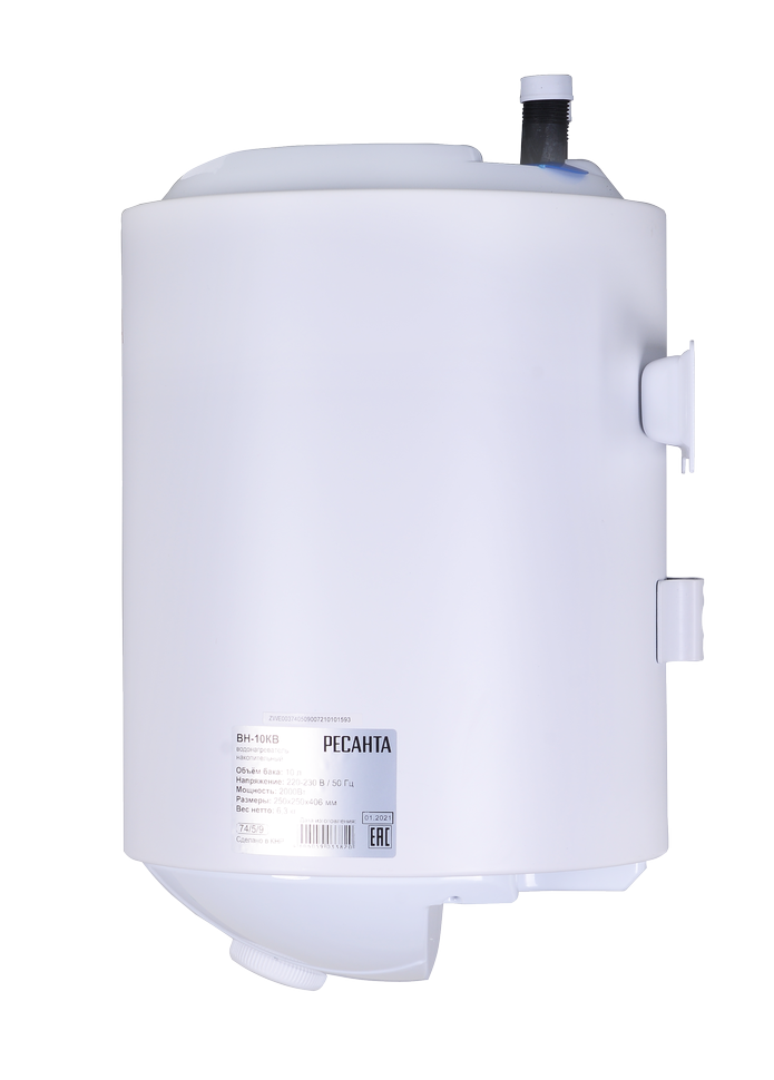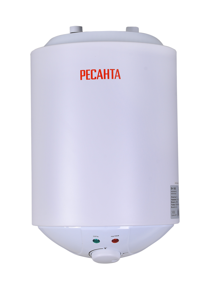 Так как мощность нагревательного элемента Ресанта ВН-10КВ составляет 2 кВт, устройство быстро набирает температуру. Встроенный термостат контролирует нагрев воды. На пульте управления можно легко отрегулировать работу термостата до 75°С. При нагреве воды до 95°С он полностью отключает накопитель от электричества. Предохранительный клапан предупреждает образование избыточного давления внутри емкости.