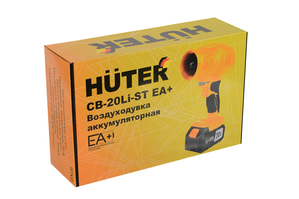Комплектация включает емкий литий-ионный аккумулятор 20 В / 4 Ач, которого хватит на продолжительную работу. Система EA+ обеспечивает совместимость с другими инструментами Huter той же платформы.