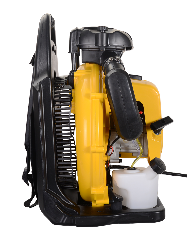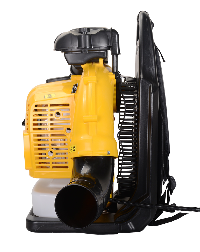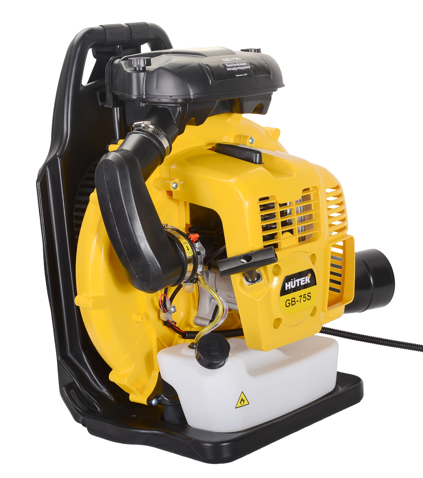 Двигатель объемом 75 см³ одноцилиндровый, двухтактный, бензиновый с воздушным охлаждением обеспечивает высокую мощность (3,8 кВт) и производительность устройства. Максимальный объем перемещаемого воздуха составляет 1900 м³/ч.