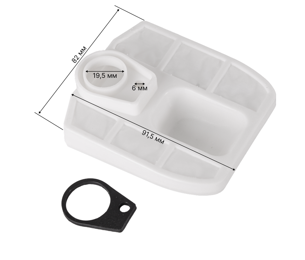 - Подходящие размеры. Габариты фильтра рассчитаны таким образом, чтобы соответствовать посадочному месту и органично вписываться в конструкцию бензопилы.
