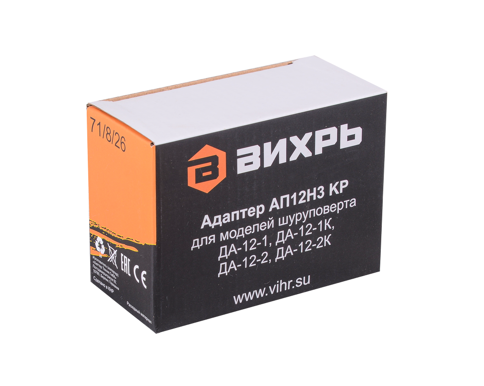 Адаптер АП12Н3 КР- зарядное устройство, предназначенное для быстрой и эффективной зарядки аккумуляторных батарей шуруповертов Вихрь следующих моделей: