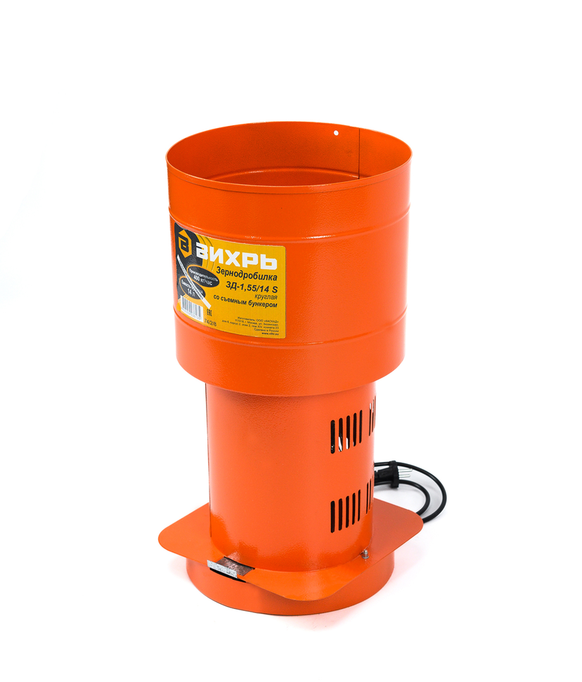 Измельчитель зерна ВИХРЬ ЗД-1,55/14 S не нуждается в специальном обслуживании, но периодически необходимо проверять на износ ножи и сито, а также очищать от мучной пыли зернодробилку и ее основные части. Конструкция отличается меньшим весом, а для удобства транспортировки предусмотрена возможность отсоединения бункера для загрузки зерна от корпуса.